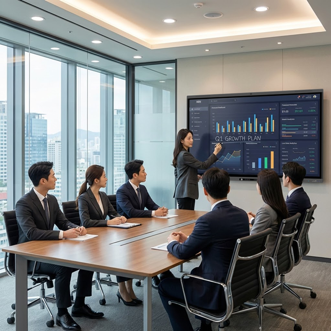 즉, 가격이 저렴한 전자칠판은 처음에는 “기본 기능은 다 있네”처럼 보일 수 있지만, 실제 회의나 수업에서 자주 쓰다 보면 답답함이나 불편함이 누적될 수 있고, 특히 기업용 전자칠판이나 회의실 전자칠판은 발표 자료만 띄우는 데서 끝나지 않고, 웹브라우저, 문서, 영상, 판서, 무선 화면 공유가 동시에 활용되는 경우가 많기 때문에 이런 환경에서는 단순한 기본 사양으로는 만족도가 떨어질 수 있습니다.
